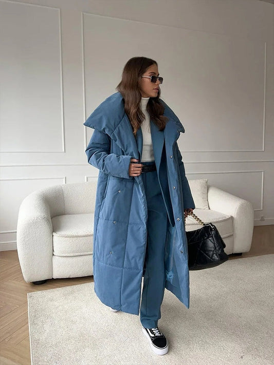 Marjolaine Parka Jas Dames | Winterjas Met Riem | Gewatteerde Herfstjas Vrouw Blauw