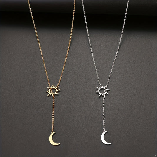 Aurora | Roestvrijstalen Zonnetotem & Maan Halsketting voor Zomerse Feesten