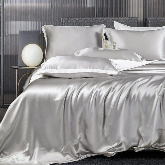 Premium Grijze Moerbei Zijde Beddengoed Set