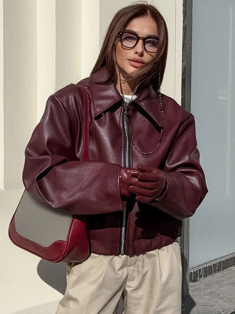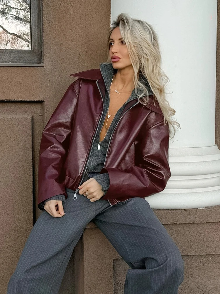 Bianca PU Leren Bomber Jack voor Dames - Stijlvolle Winterjas in Burgundy Rood