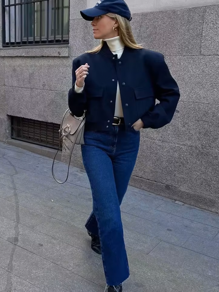 Charlotte Bomberjas Vrouw | Dames Winterjas | Baseball Herfstjas Navy Blauw