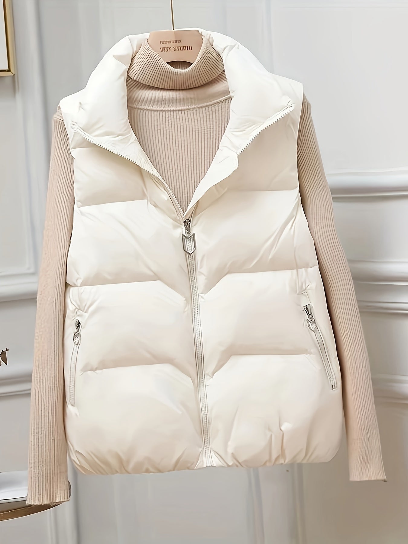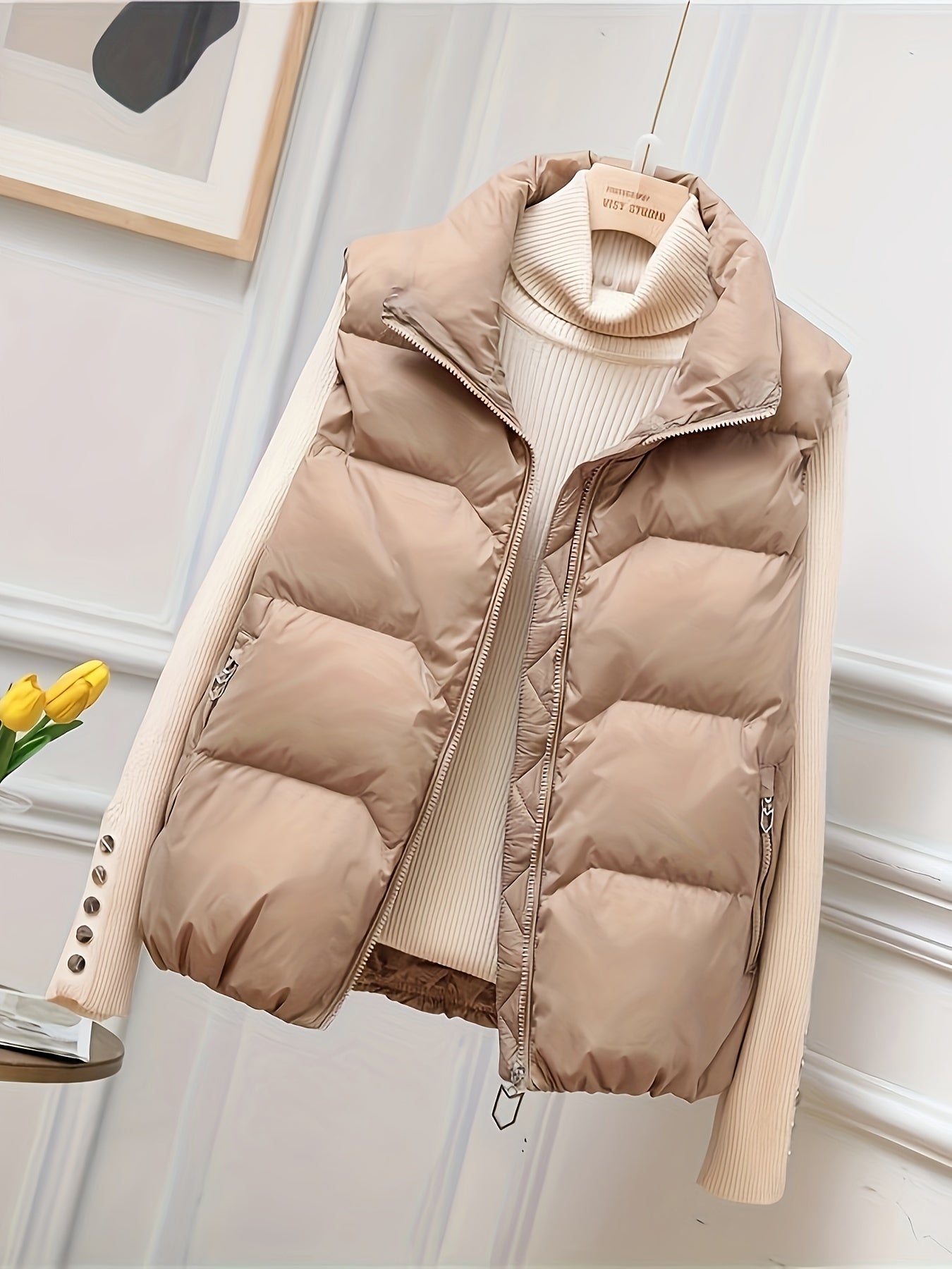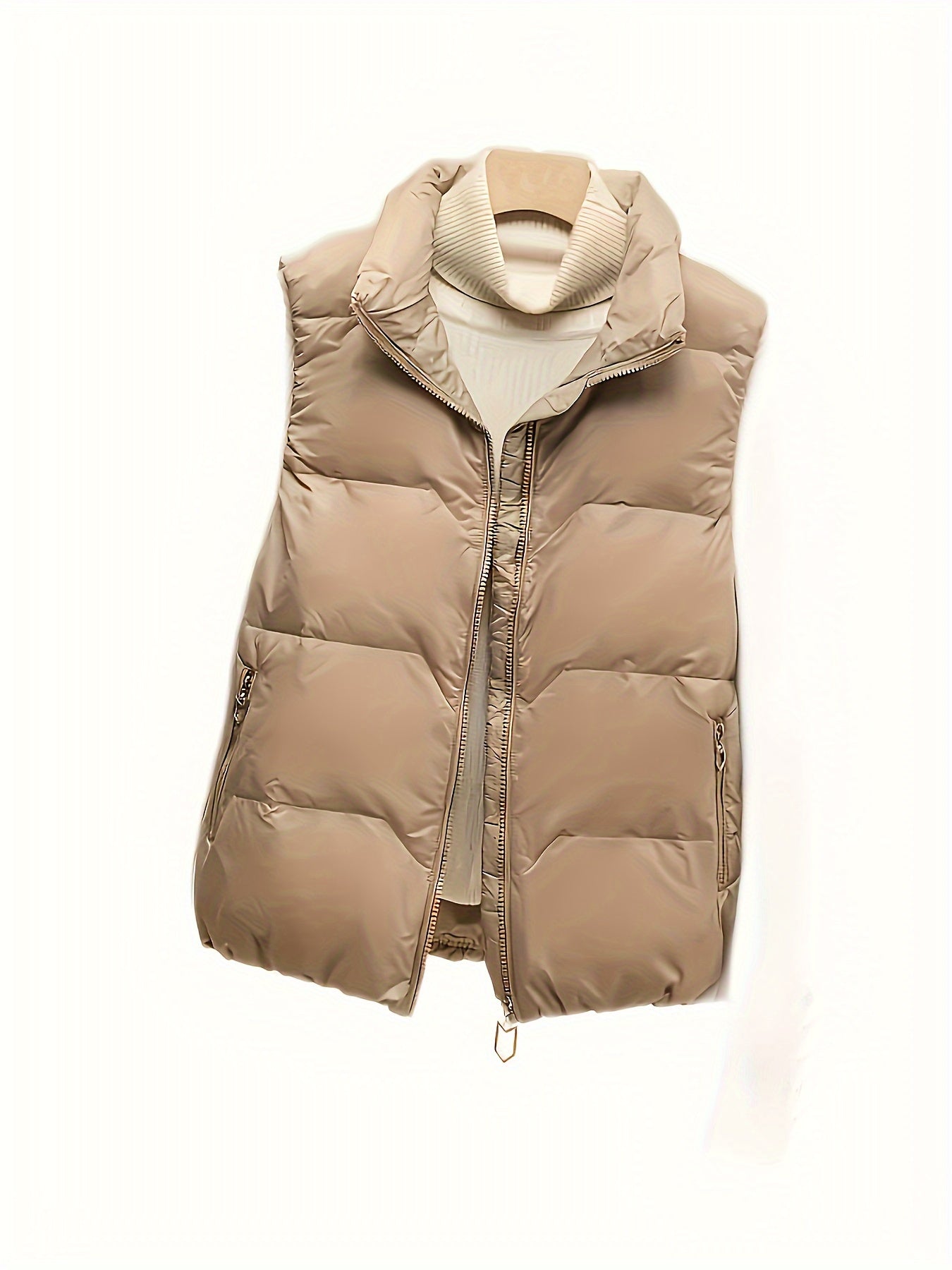Ontdek nu de Lily | Solid Color Zipper Loose Vest Jacket, perfect voor vrouwen die een veelzijdig en stijlvol kledingstuk zoeken voor de herfst en winter. Dit casual mouwloze vest met een ritssluiting aan de voorkant en een kleine staande kraag biedt zowel comfort als functionaliteit. De losse pasvorm en praktische ritszakken maken het ideaal voor dagelijks gebruik, terwijl het eenvoudige ontwerp zorgt voor een tijdloze uitstraling.