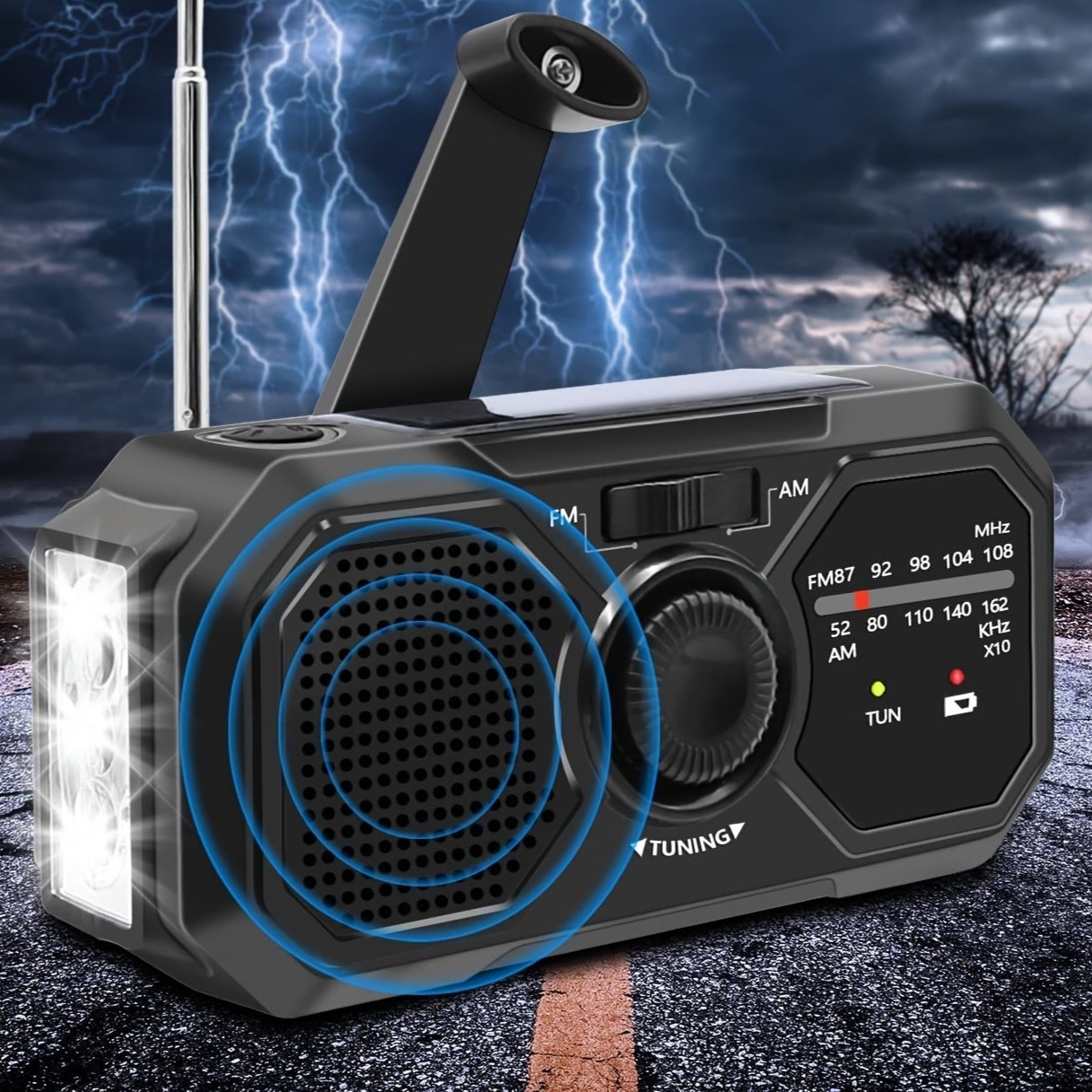 Blijf in contact tijdens noodgevallen met deze multifunctionele radio die zonne- en handcrank opladen biedt.