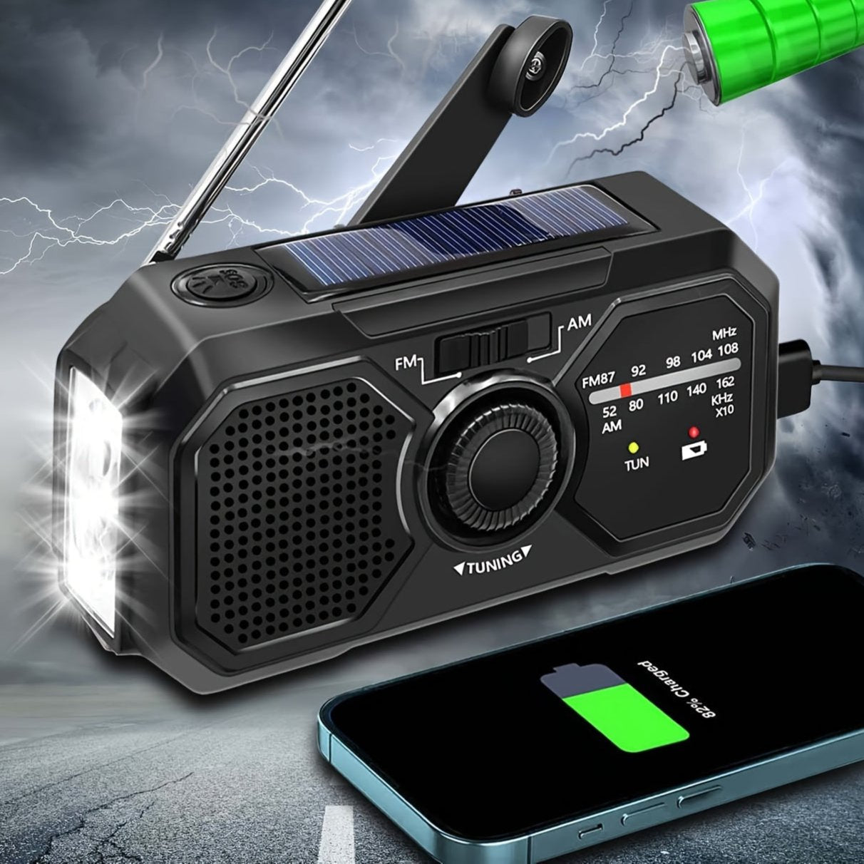 In noodsituaties wil je niet zonder informatie zitten. De Emergency Crank Weather Radio biedt je betrouwbare toegang tot AM/FM radio, een krachtige zaklamp, en een manier om je apparaten op te laden, zelfs wanneer er geen stroom beschikbaar is. Met de zonne- en handcrank opties ben je altijd voorbereid, ongeacht de omstandigheden. Deze draagbare radio is een must-have voor je noodkit!