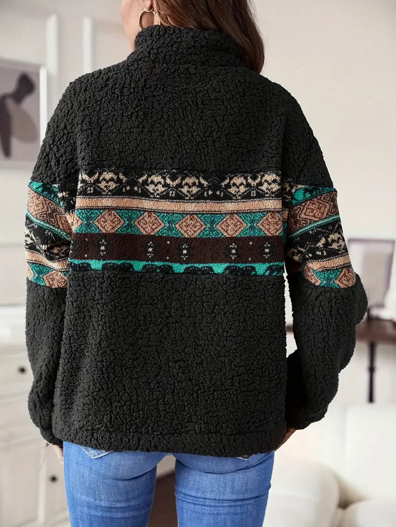 Het Emma Teddy-Sweatshirt is de perfecte mix van comfort en stijl. Met een zachte teddytextuur en een stijlvolle kwart-ritssluiting biedt dit sweatshirt warmte voor de koudere dagen, terwijl het patroon een moderne touch toevoegt. Ideaal voor casual uitjes of een ontspannen dag thuis, dit sweatshirt zorgt voor een cozy en chique look.