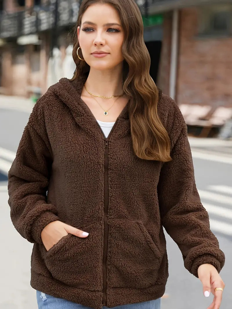 De Eva fleece winterjas is speciaal ontworpen voor vrouwen die comfort en stijl willen combineren tijdens de koudere maanden. Met een zachte fleece voering, handige rits en een warme capuchon, biedt deze jas alles wat je nodig hebt om de winter door te komen. De praktische zakken maken het plaatje compleet, zodat je altijd je essentials bij de hand hebt.