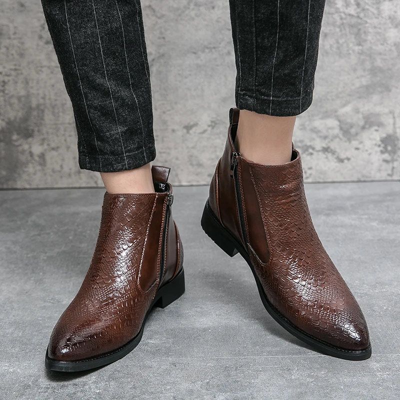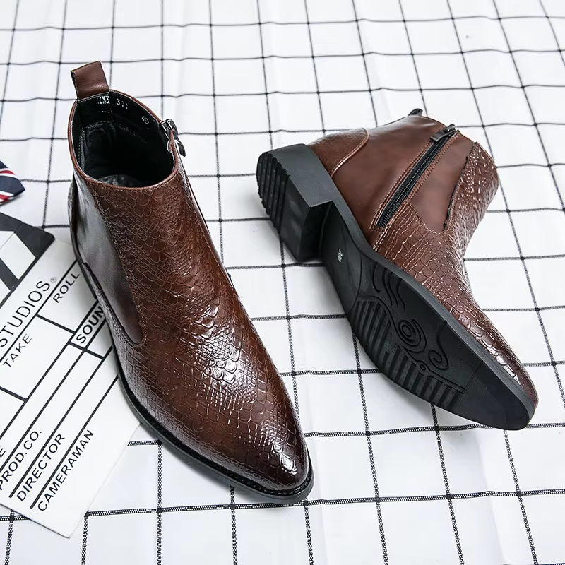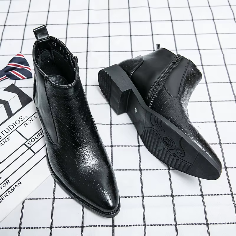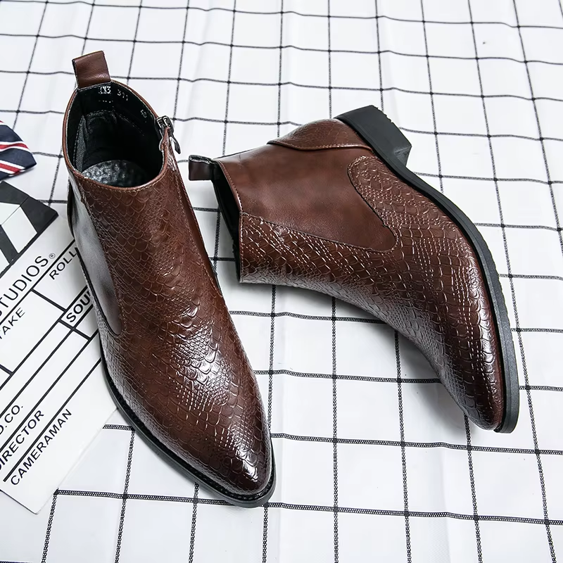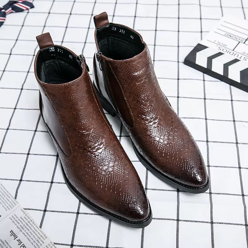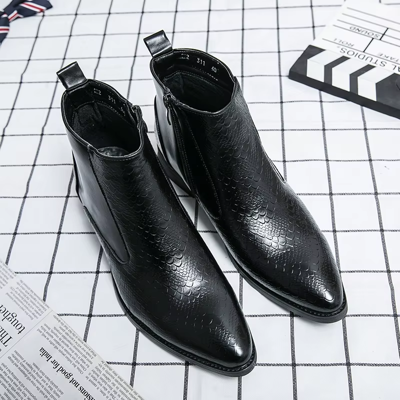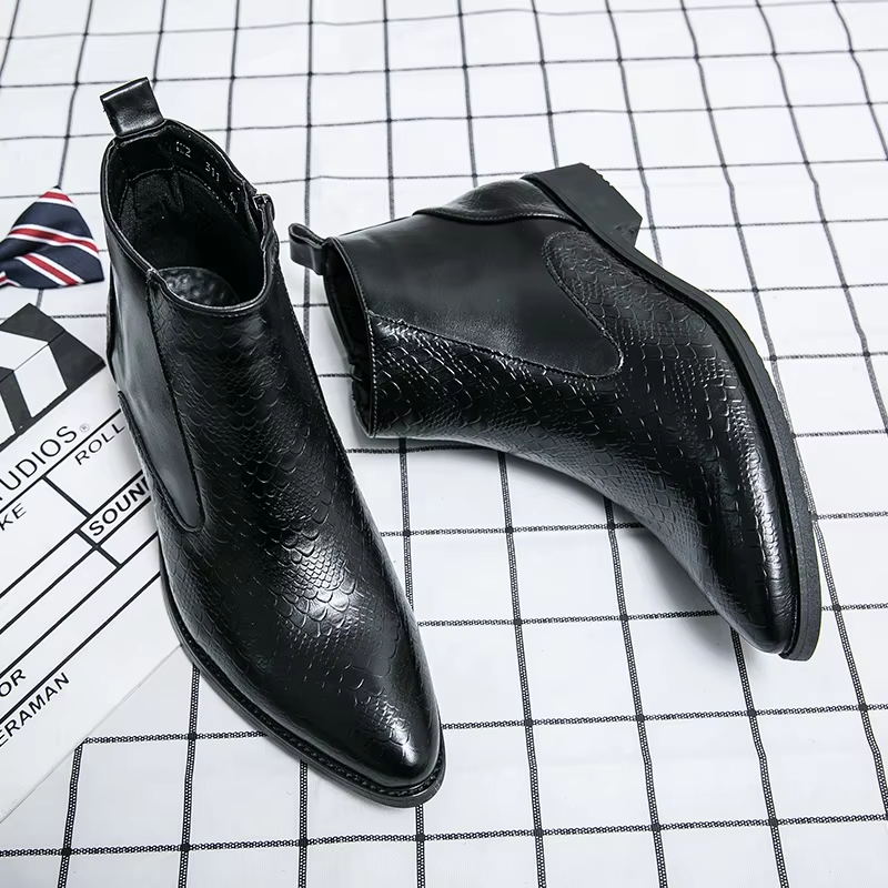 Ontdek de Fostren leren enkellaarzen, ontworpen voor mannen die luxe en verfijning waarderen. Deze stijlvolle enkellaarzen zijn voorzien van een hoogwaardige leren textuur en een comfortabele zijrits, perfect voor formele gelegenheden of een chique dagelijkse look. Het elegante, slanke ontwerp gecombineerd met een luxe uitstraling zorgt ervoor dat je er altijd op je best uitziet.