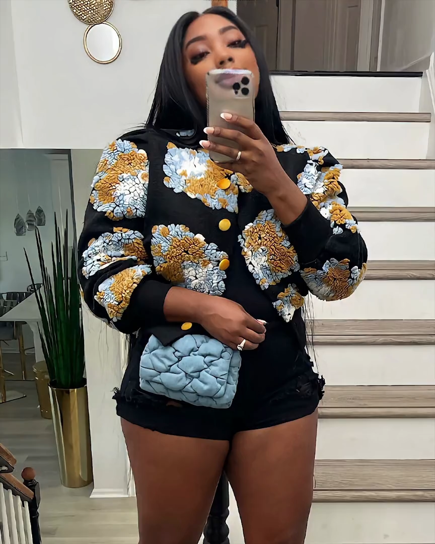 Wikkel jezelf in de kunstzinnigheid van de winter met de GiuseppePetalini️ 3d bloemen jas. Dit statement item combineert chique comfort met avant-garde design, met ingewikkelde 3D-bloemenversieringen op een pluche sherpa stof. Verhoog je winterstijl met deze unieke jas die warmte en mode naadloos in elkaar laat overvloeien.
