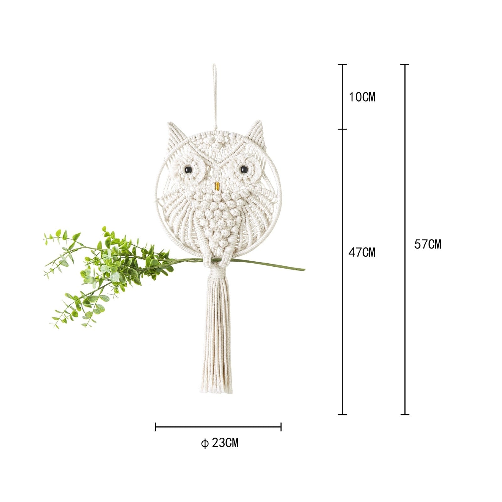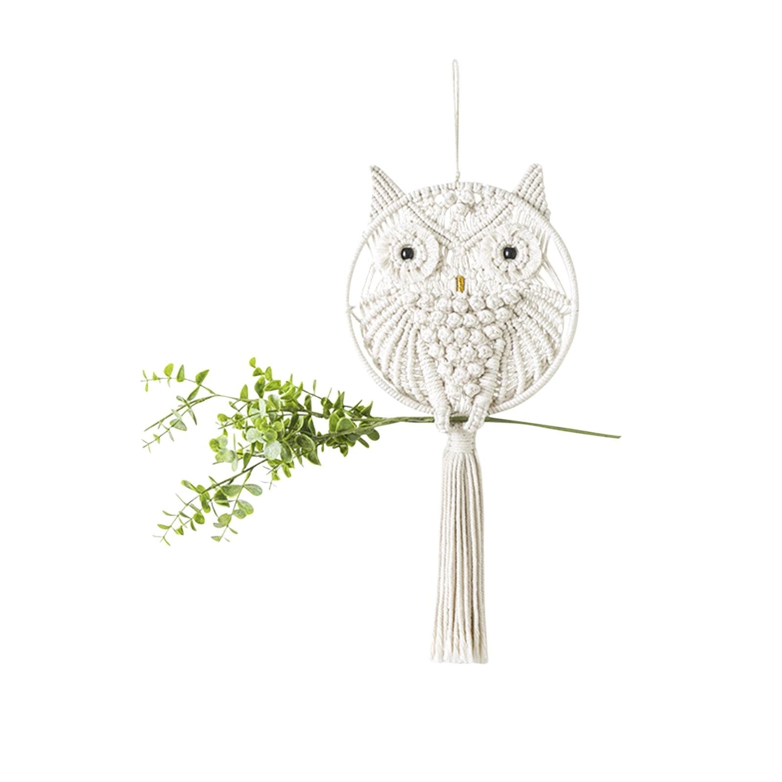 Handgeweven ontwerp - De Handgeweven Uilen Dromenvanger is een uniek en bijzonder decoratief stuk dat zorgvuldig is vervaardigd door bekwame ambachtslieden met behulp van traditionele technieken. Het ingewikkelde ontwerp van de dromenvanger getuigt van het vakmanschap en de aandacht voor details, waardoor elk stuk echt uniek is. Het gebruik van traditionele weeftechnieken houdt niet alleen het culturele erfgoed in stand, maar bevordert ook duurzame en ethische praktijken in de ambachtelijke industrie.