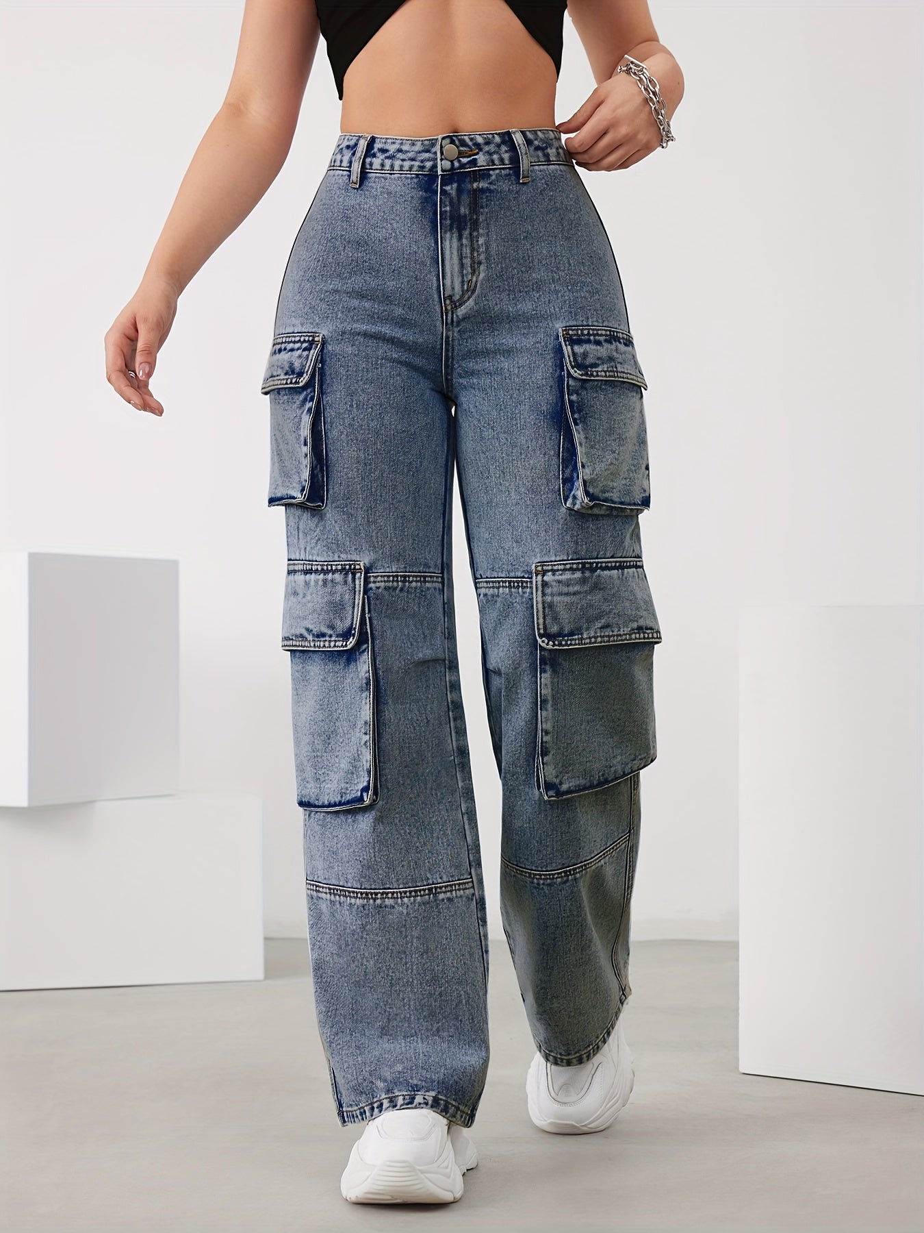 Ontdek nu de Emma | Sky Blue Multi Pocket Cargo Pants, de perfecte keuze voor een comfortabele en trendy uitstraling. Deze cargo pants in sky blue hebben een hoge taille en een losse, wijde pasvorm, met meerdere zakken voor praktische opbergruimte. Gemaakt van denim materiaal, zijn ze ideaal voor dagelijks gebruik en een veelzijdige aanvulling op je denimcollectie.
