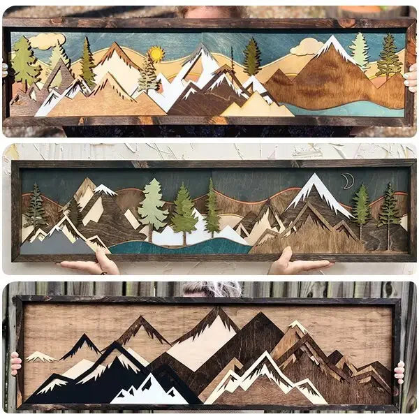 Handgemaakt houten ontwerp - De Wood Mountain Wall Art is handgemaakt met behulp van hoogwaardige houten materialen, waardoor elk stuk uniek en one-of-a-kind is. Het bergketenontwerp is ingewikkeld bewerkt, waardoor een mooi en realistisch effect ontstaat dat diepte en textuur toevoegt aan het kunstwerk.