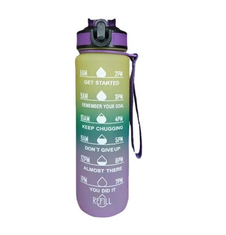 Ontdek de ultieme hydratatie-oplossing met de HydraBottle. Deze 1000ml waterfles is perfect voor fitness, yoga, wandelen en meer. De tijdmarkeringen helpen u de hele dag door voldoende water te drinken, terwijl het lekvrije flip-top ontwerp en de draagriem voor gemak zorgen. Ideaal voor een actieve levensstijl!