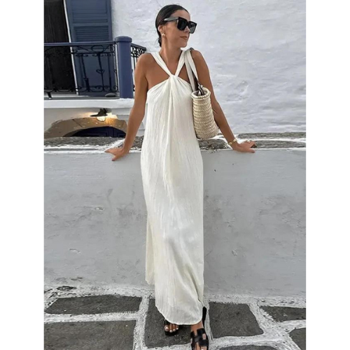 Laat je omarmen door de onweerstaanbare charme van de Isabella Elegante Off-Shoulder Maxi Jurk. Deze prachtige jurk combineert moeiteloos elegantie en comfort, met een off-shoulder ontwerp dat een vleugje sensualiteit toevoegt aan je look. De mouwloze, losse pasvorm zorgt voor ultieme bewegingsvrijheid, terwijl de vloeiende stof een luchtige en lichte ervaring biedt, perfect voor zowel de lente als de zomer. Ideaal voor elke vrouw die zich zelfverzekerd en stijlvol wil voelen, of je nu een dagje uit gaat of een speciale gelegenheid hebt.