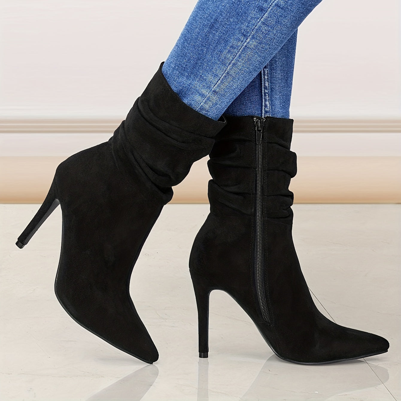 De Isabella korte laarzen combineren een verfijnde stijl met een comfortabele pasvorm. Perfect voor zowel formele als feestelijke gelegenheden, deze laarzen hebben een spitse neus en een ultrahoge naaldhak. Met een handige ritssluiting aan de zijkant trek je ze gemakkelijk aan en uit.