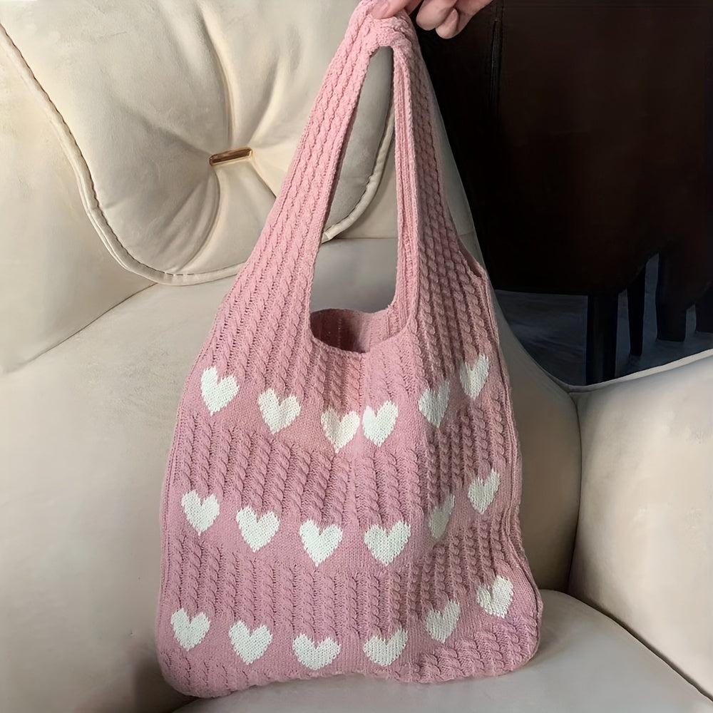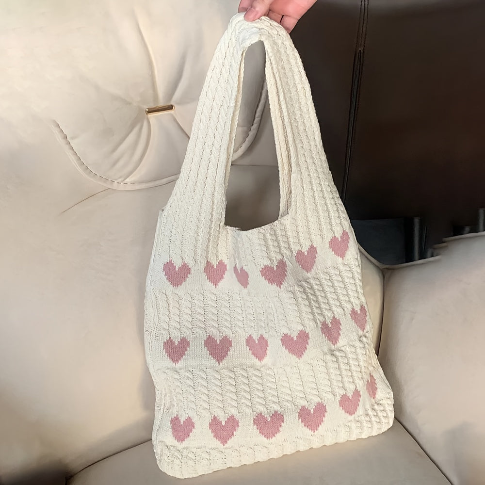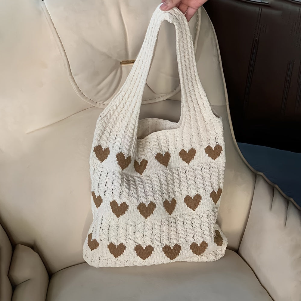 Trendy Ontwerp: Het charmante liefdespatroon geeft de tas een unieke uitstraling, perfect om je outfit een speelse touch te geven.