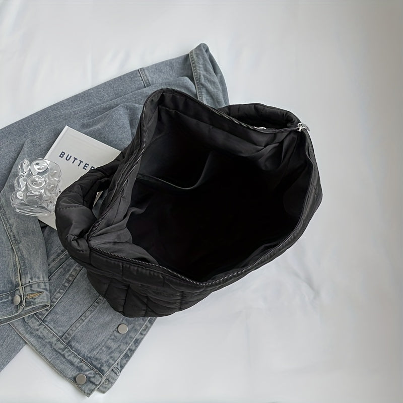 Trendy en Praktisch: Het gewatteerde ontwerp voegt een modieuze touch toe aan je outfit, terwijl de stevige constructie zorgt voor een betrouwbare en duurzame tas voor elk avontuur.