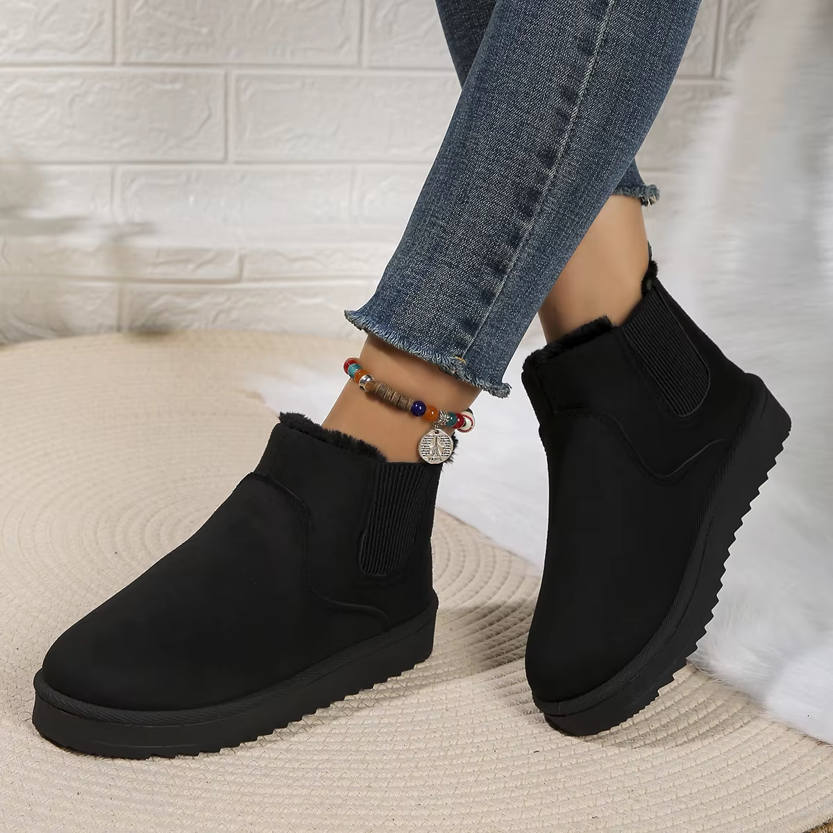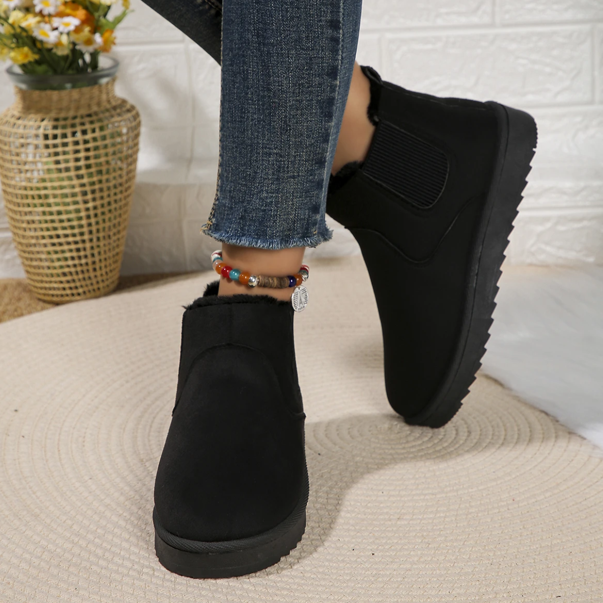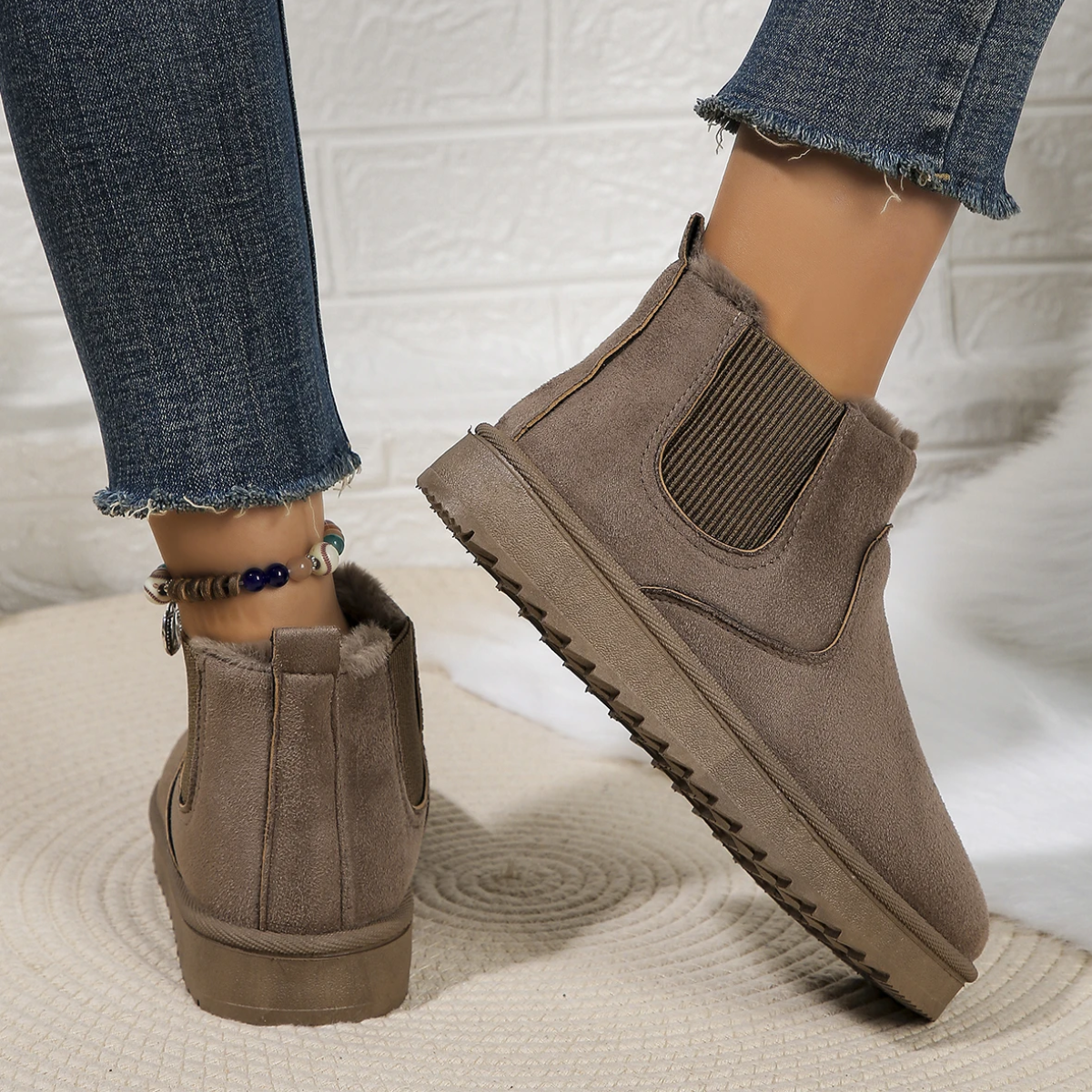Ervaar moeiteloos comfort en stijl met de MonAmi eenvoudige lichtgewicht gevoerde laarzen. Deze laarzen zijn ontworpen voor dagelijks gebruik en bieden een zachte voering die je voeten warm houdt tijdens koude dagen. Het lichtgewicht ontwerp zorgt voor langdurig draagcomfort zonder vermoeidheid, terwijl de elastische zijpanelen een gemakkelijke instap bieden. De stevige antislipzool biedt grip op diverse ondergronden, zodat je met vertrouwen kunt wandelen, zelfs op gladde oppervlakken. Deze minimalistische laarzen zijn perfect voor casual outfits tijdens de wintermaanden.