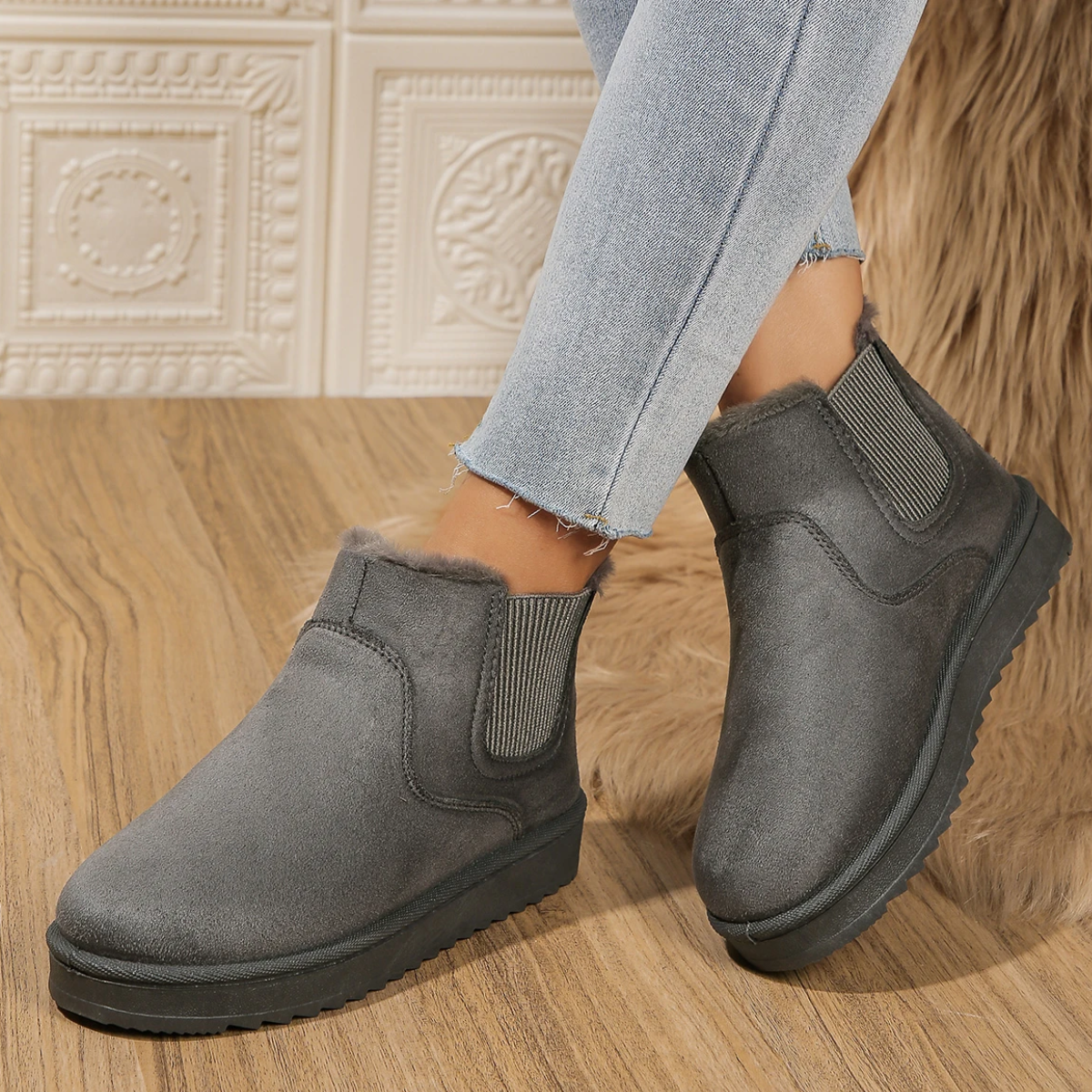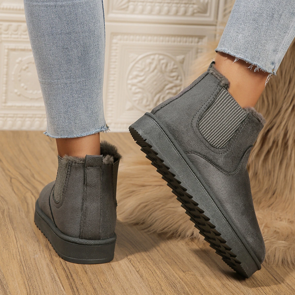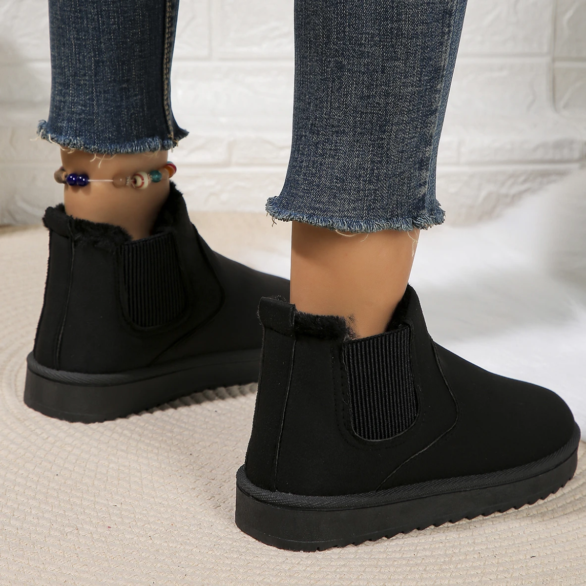 Ervaar moeiteloos comfort en stijl met de MonAmi eenvoudige lichtgewicht gevoerde laarzen. Deze laarzen zijn ontworpen voor dagelijks gebruik en bieden een zachte voering die je voeten warm houdt tijdens koude dagen. Het lichtgewicht ontwerp zorgt voor langdurig draagcomfort zonder vermoeidheid, terwijl de elastische zijpanelen een gemakkelijke instap bieden. De stevige antislipzool biedt grip op diverse ondergronden, zodat je met vertrouwen kunt wandelen, zelfs op gladde oppervlakken. Deze minimalistische laarzen zijn perfect voor casual outfits tijdens de wintermaanden.