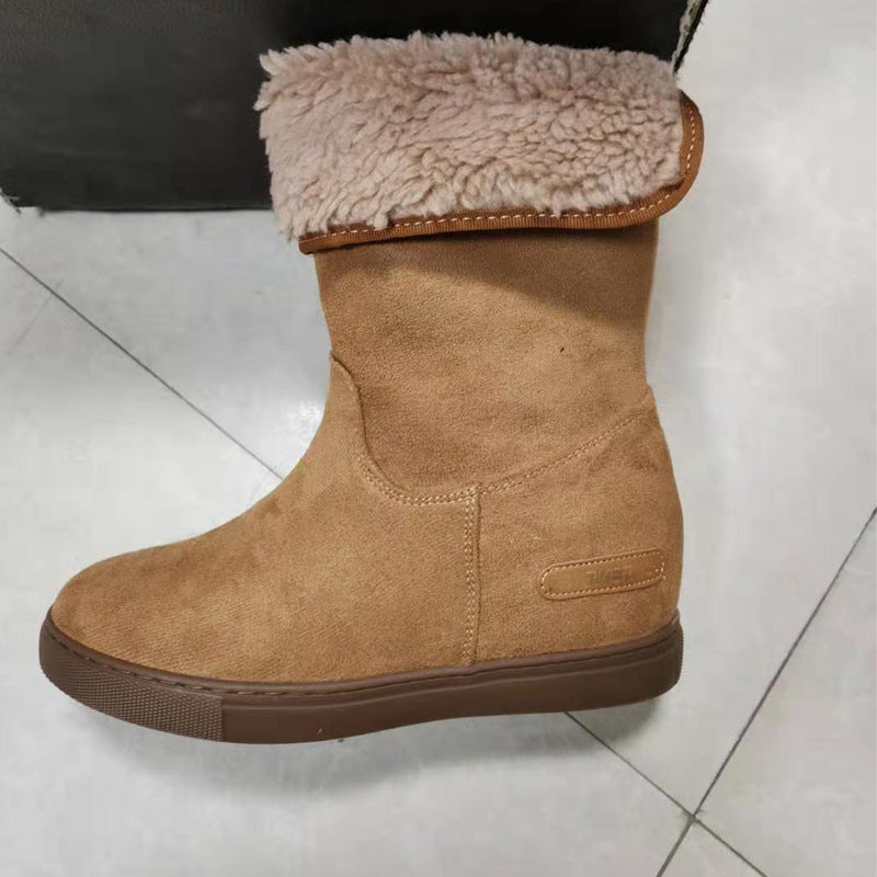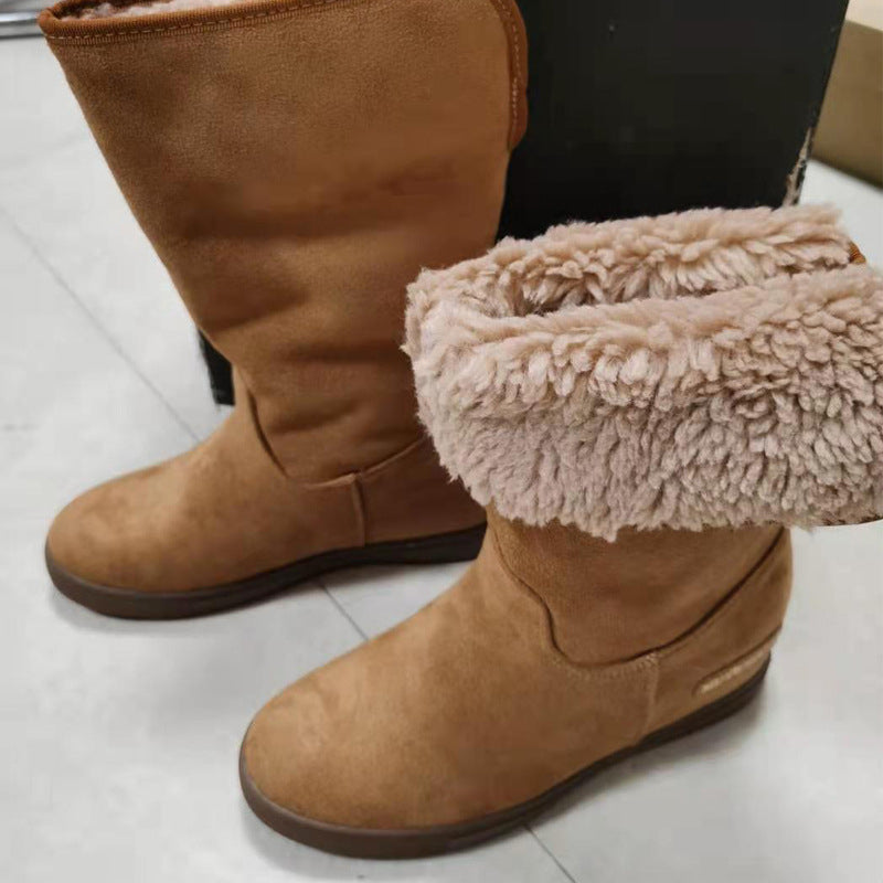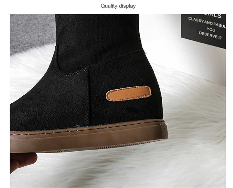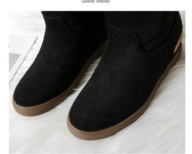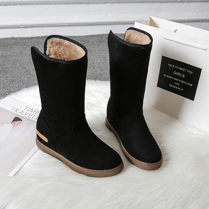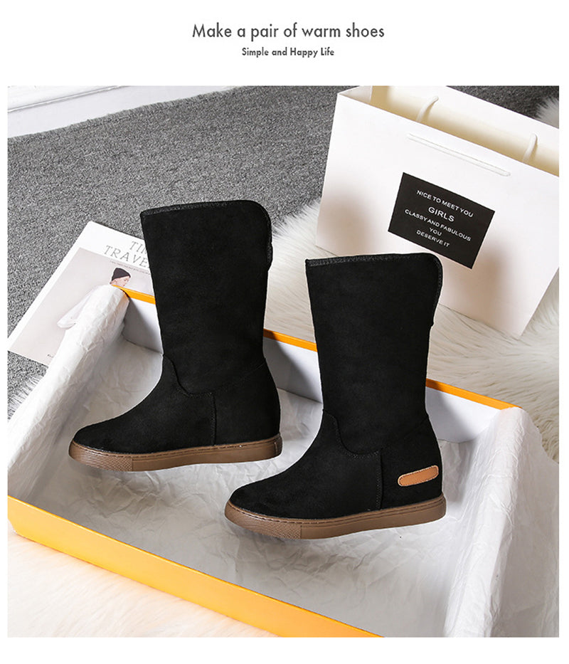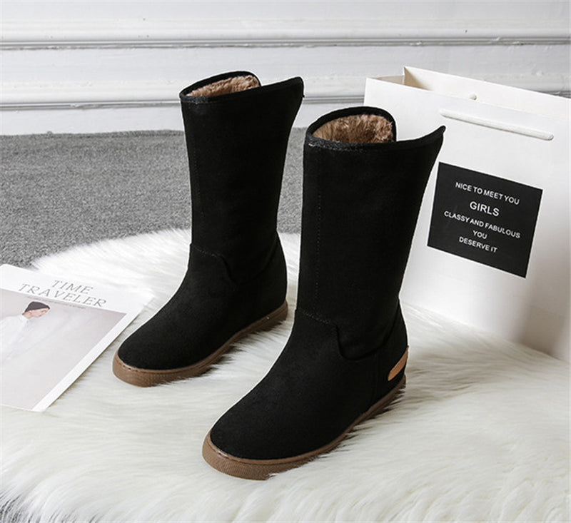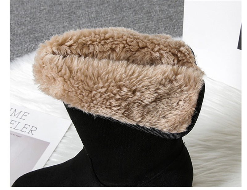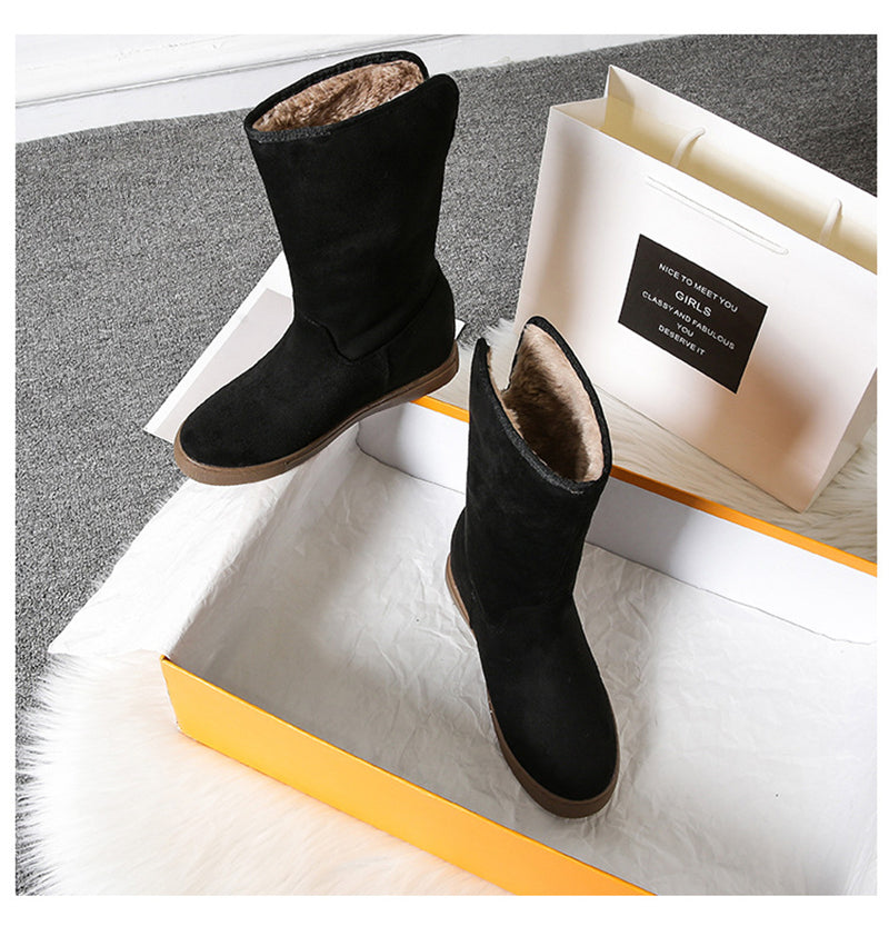 Blijf warm en comfortabel met de MonAmi Zwarte Wollen Platte Winddichte Gevoerde Laarzen – de perfecte laarzen voor de winter!