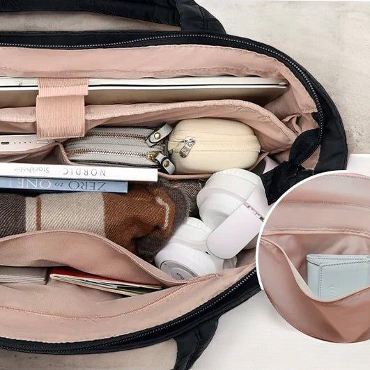 Stijlvol en Comfortabel: Het moderne puffer design geeft je outfit een fashionable upgrade, en de stevige handvatten zorgen voor comfortabel dragen, de hele dag door.