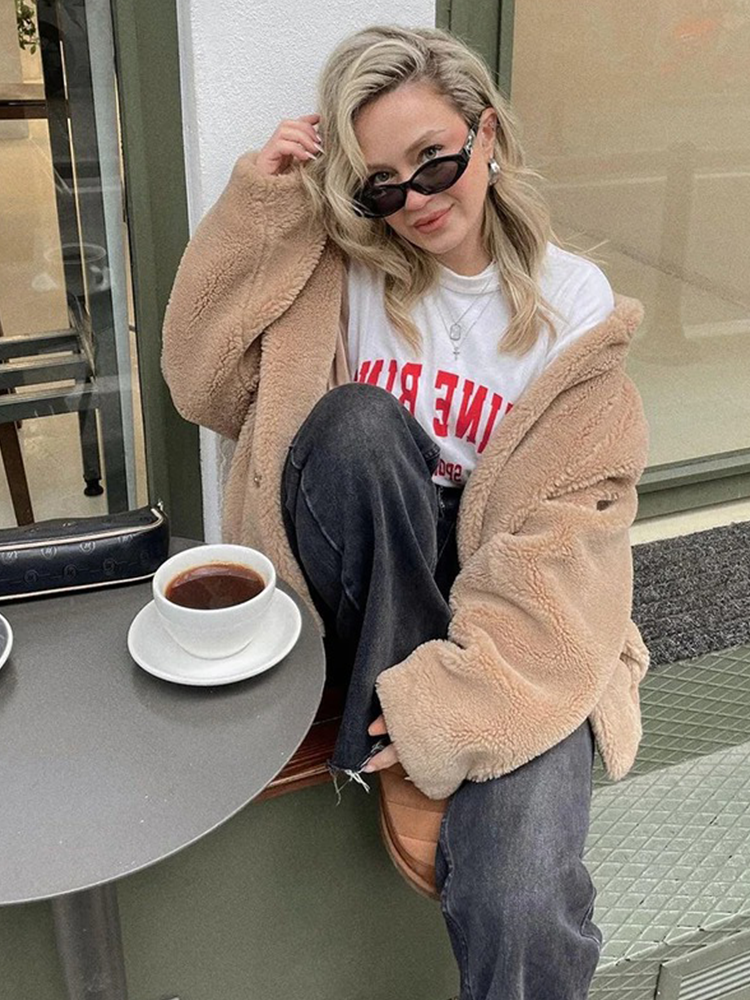 Trendy teddy ontwerp: Gevoerd met borg lining voor extra warmte tijdens koude dagen