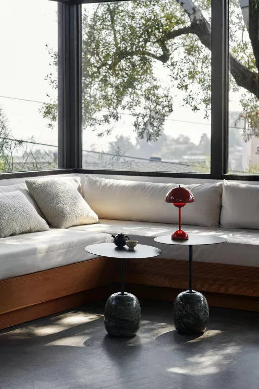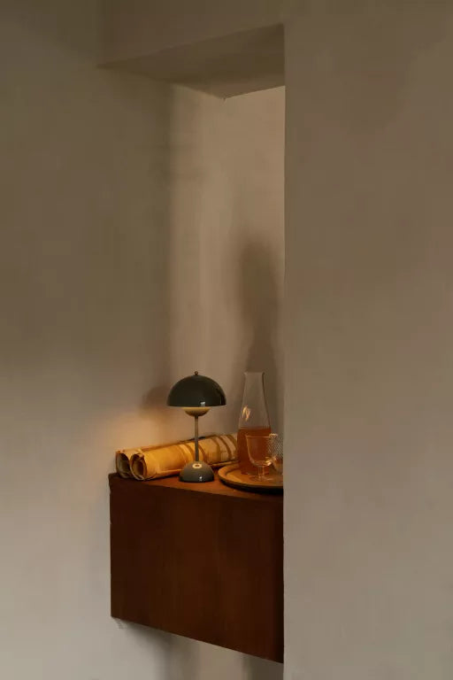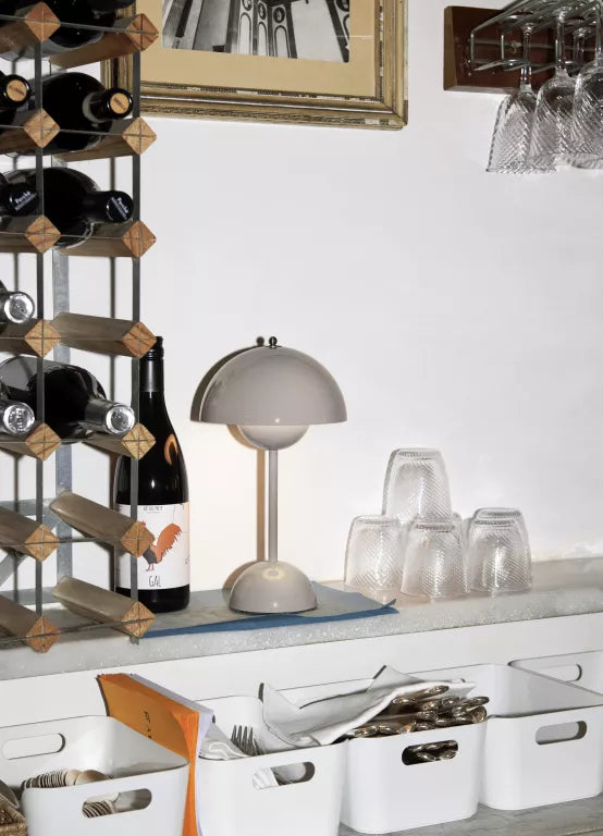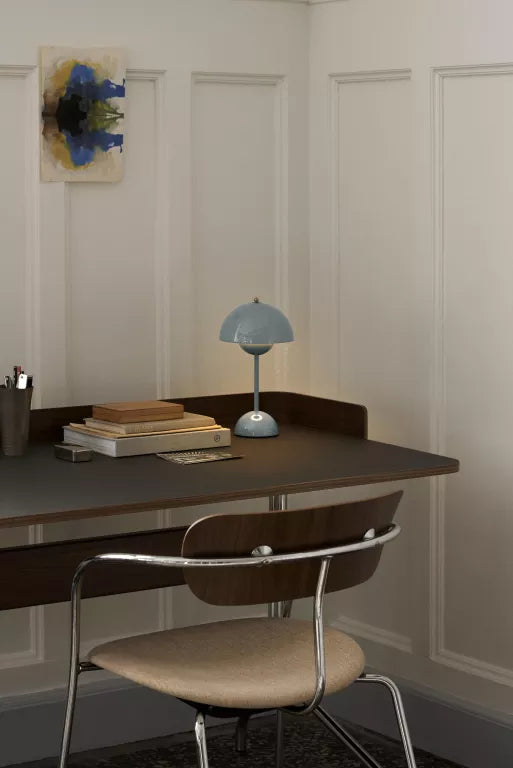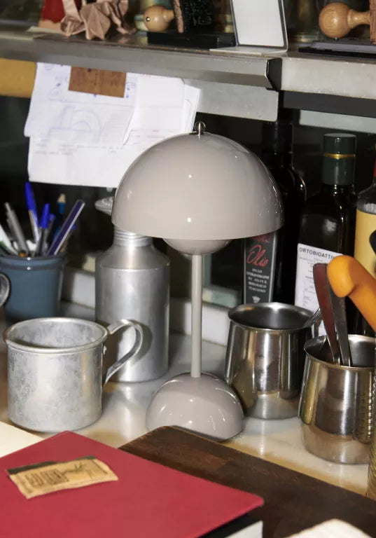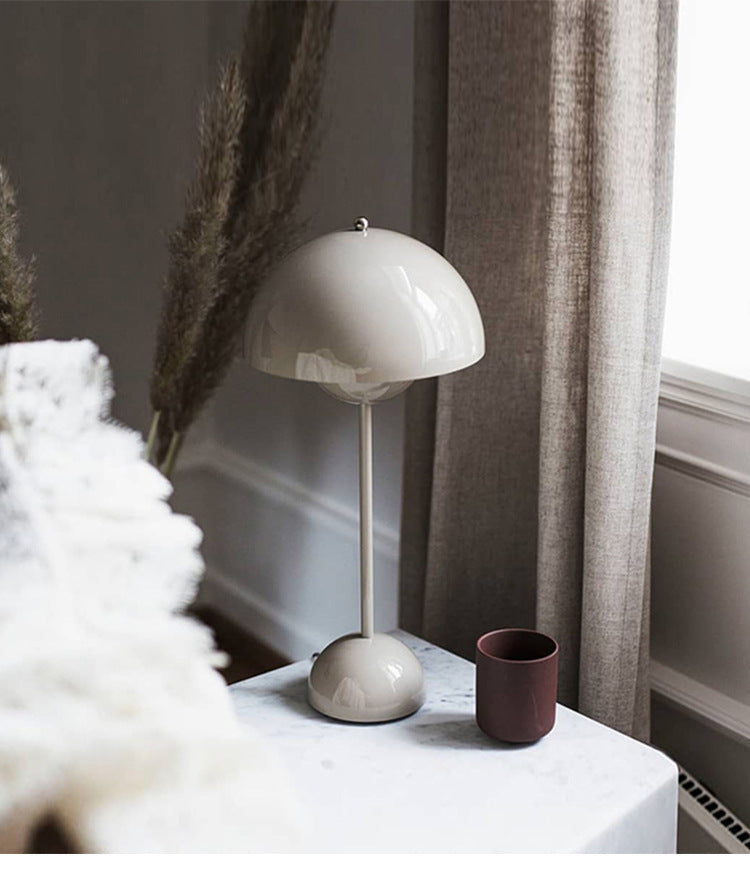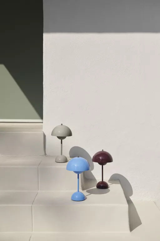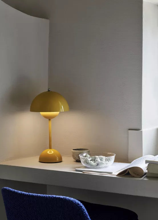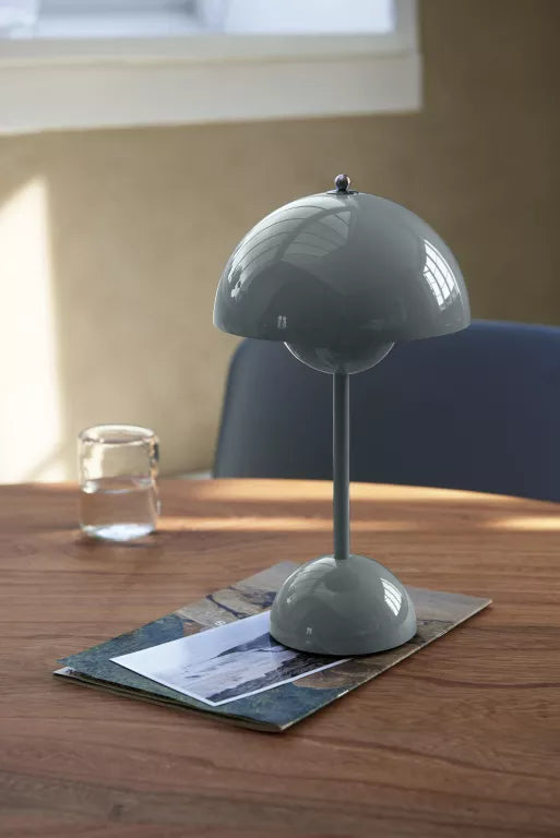 Tafellamp gebaseerd op de FlowerPot VP9 tafellamp van &tradition. De lamp is de weerspiegeling van de flower power beweging en werd ontworpen door Verner Panton.