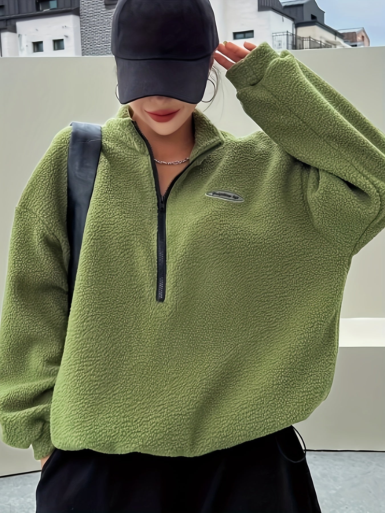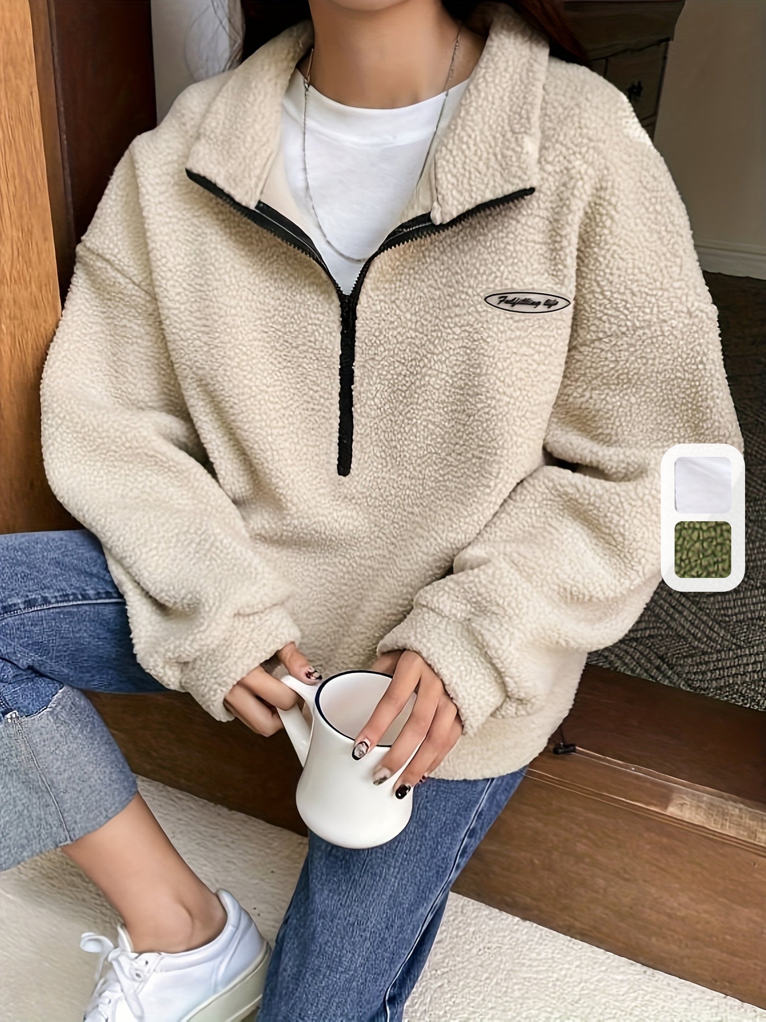 Deze comfortabele sweatshirt is gemaakt van zacht pluche materiaal en heeft een handige rits aan de voorkant. Het is ideaal voor casual outfits tijdens de koudere maanden, waarbij het warmte en comfort biedt. Met lange mouwen en een ontspannen pasvorm is deze pullover perfect voor dagelijks gebruik en informele gelegenheden.