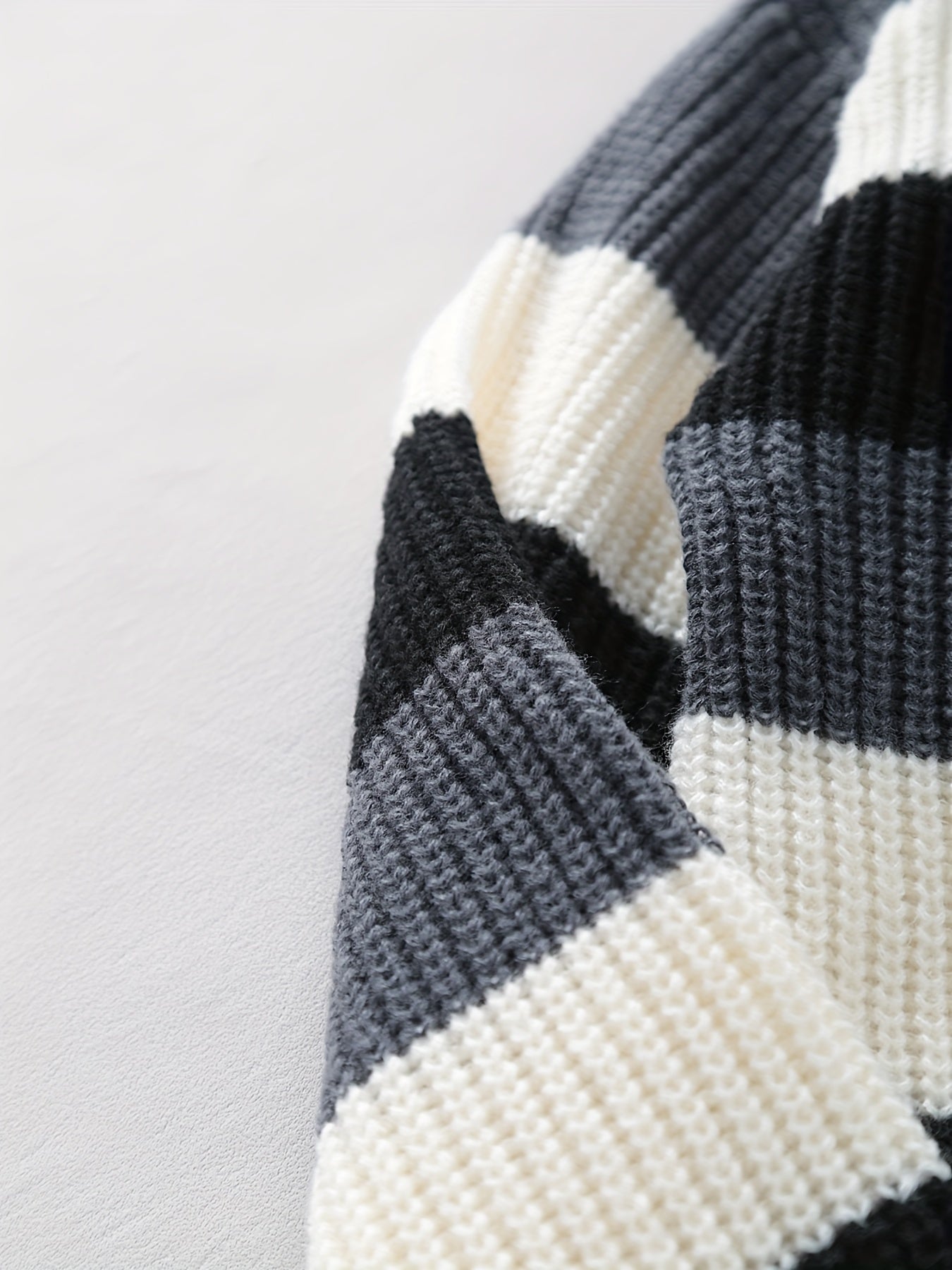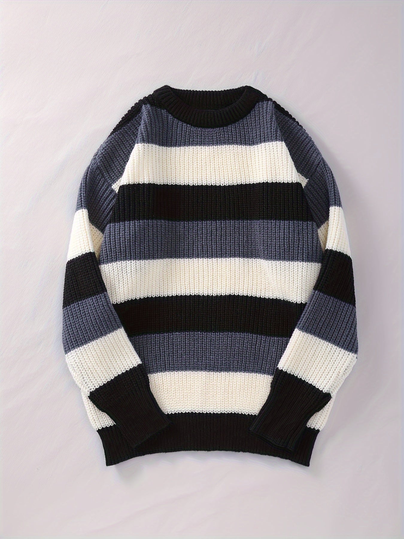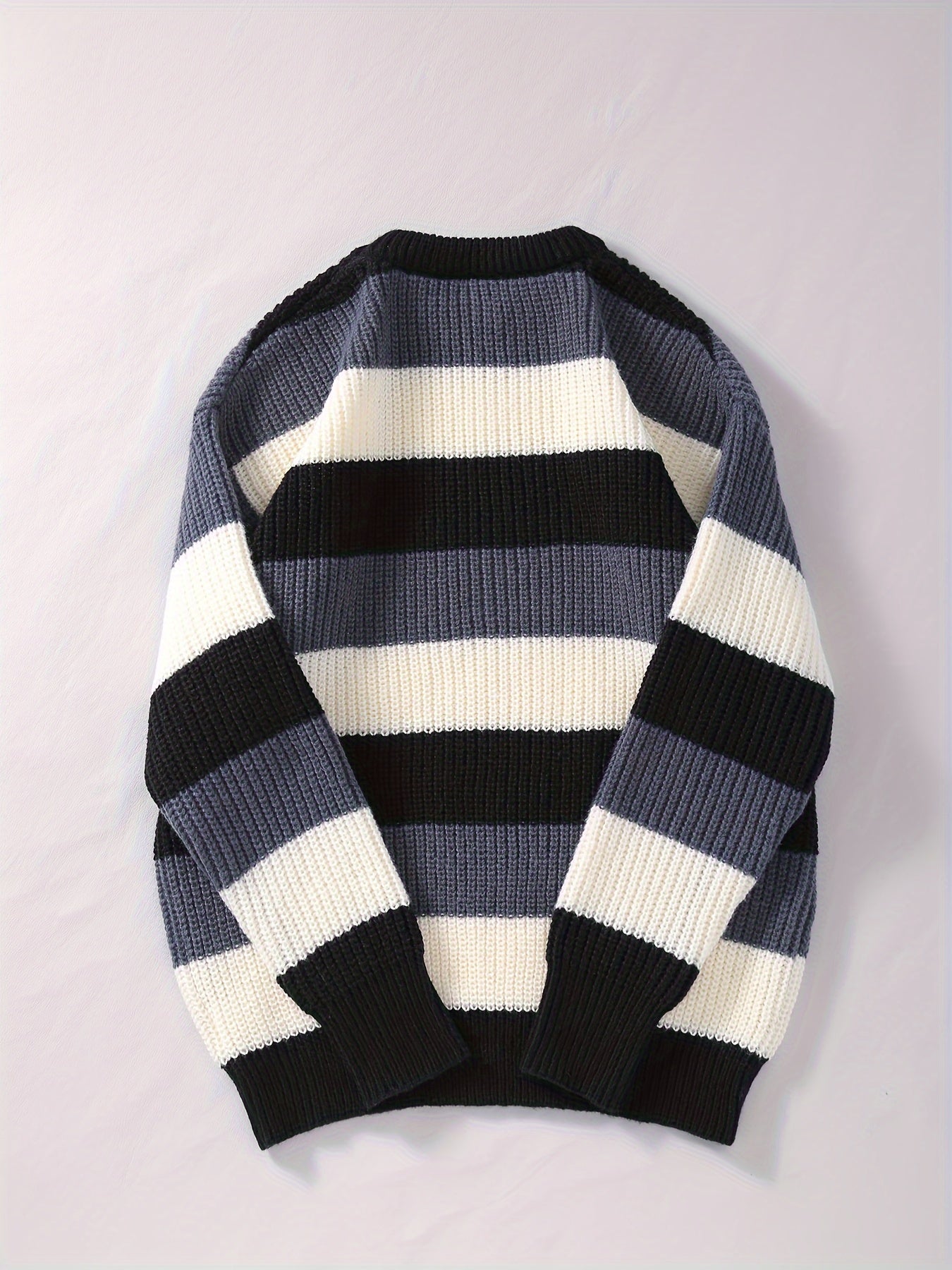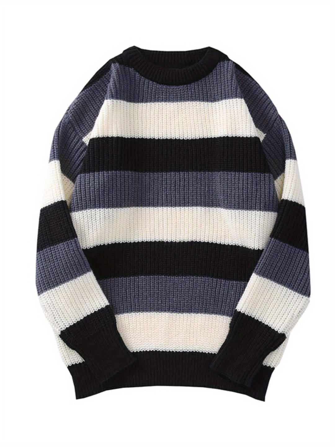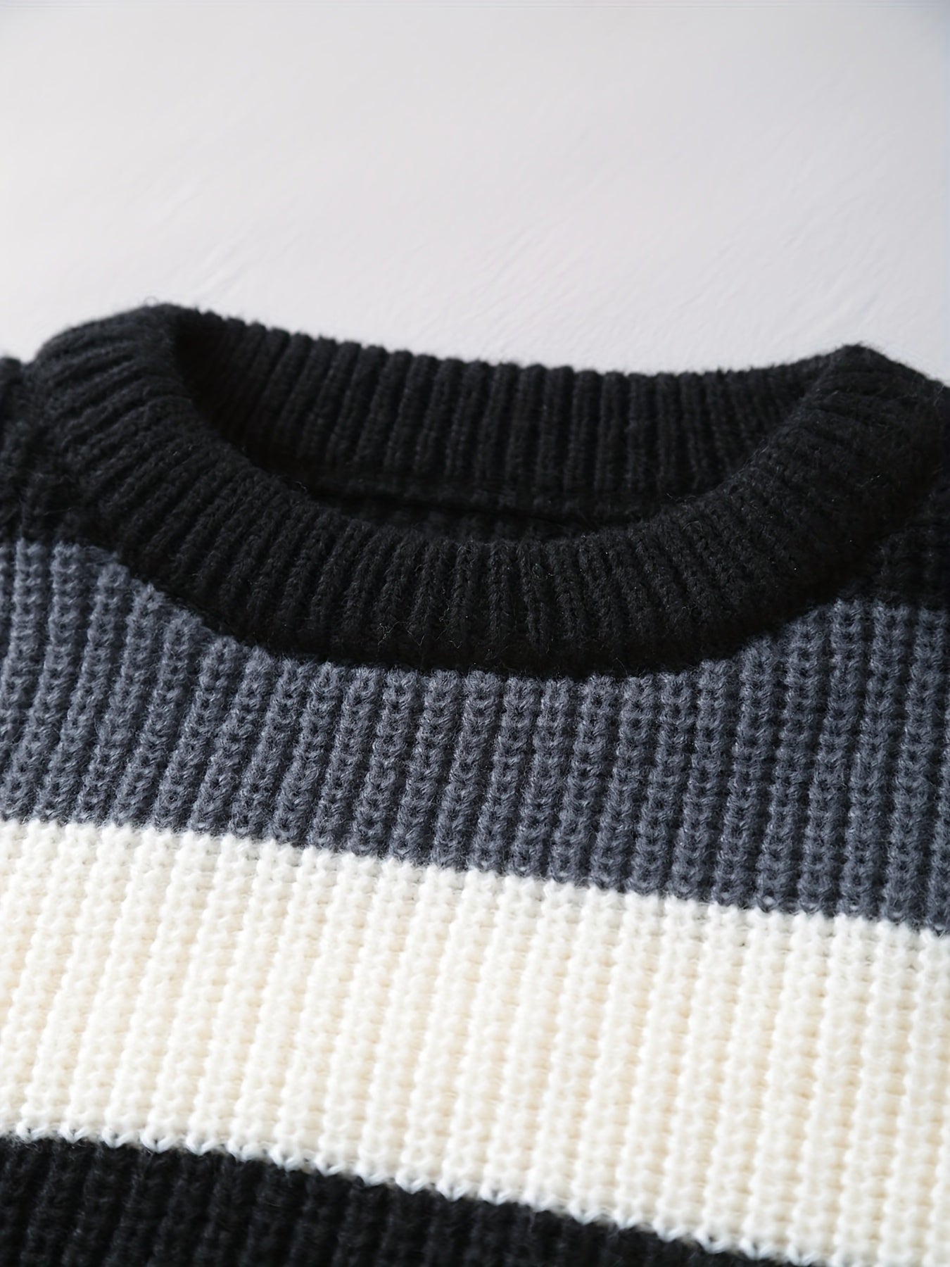 Ontdek de Oliver | Chic Gestreepte Gebreide Pullover voor Herfst en Winter, perfect voor heren die stijl en warmte willen combineren tijdens de koudere maanden. Deze pullover heeft een modern gestreept ontwerp en een comfortabele ronde hals, ideaal voor zowel casual als elegante outfits in de herfst en winter. De gebreide stof met stretch biedt niet alleen een uitstekende pasvorm, maar ook de nodige warmte, waardoor deze trui een veelzijdige keuze is voor dagelijks gebruik.