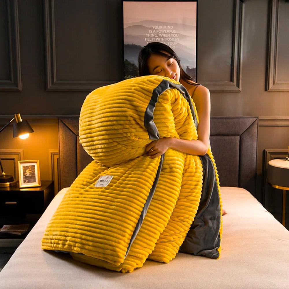 Het luxueuze fluwelen materiaal en de geweven structuur zorgen voor optimale warmte en een zachte aanraking, zelfs op de koudste dagen.