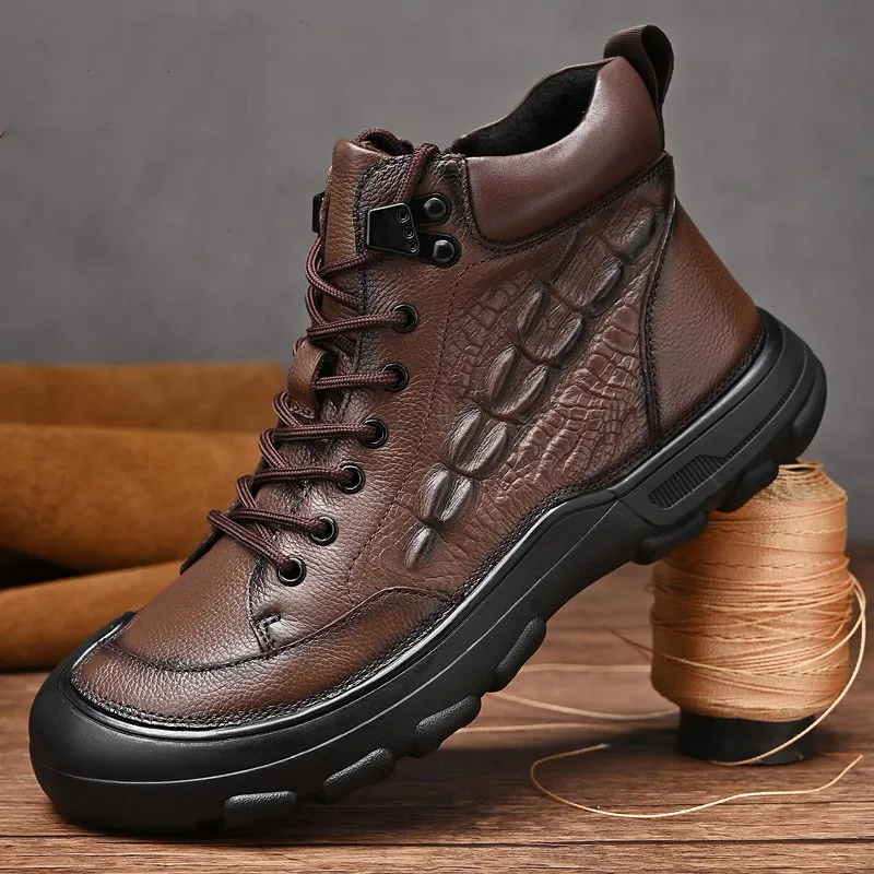 Ontdek de Vildran herenschoenen boots, een perfecte mix van stijl en robuustheid. Deze leren enkellaarzen met opvallende textuur zijn ontworpen voor mannen die houden van een stoere, unieke look. Voorzien van een stevige zool en vetersluiting, bieden deze boots zowel comfort als stabiliteit, ideaal voor dagelijks gebruik of avontuurlijke uitstapjes.